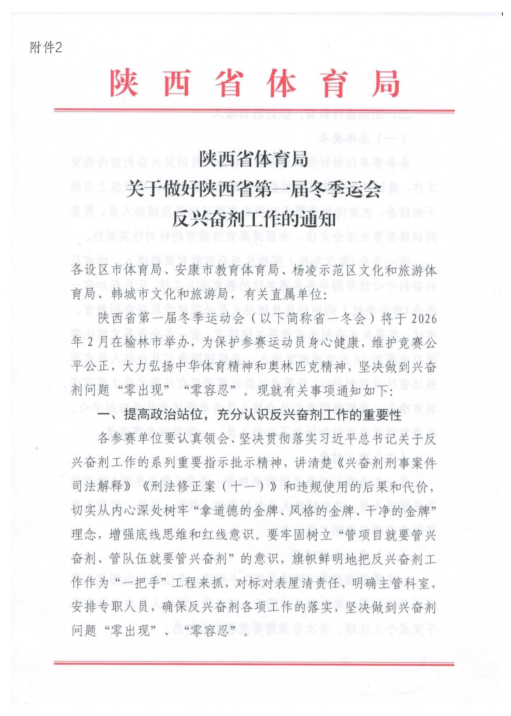 2.陕西省体育局关于做好陕西省第一届冬季运会反兴奋剂工作的通知(反兴奋剂准入教育操作指南)