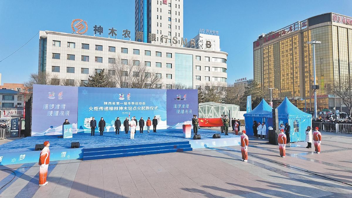 上午9时30分,点火起跑仪式正式开始。现场奏唱中华人民共和国国歌,火种盆燃起,点燃第一棒火炬。第一棒火炬手路花丽高举火炬缓缓跑下仪式台,省一冬会榆林神木站火炬传递正式开跑。70名火炬手接续传递着火炬,从神木市人民广场出发,穿过神木老城,最终抵达神木市体育场。沿途既有凝聚着神木人间百态、映照出百姓美好生活图景的人民广场,也有明长城营堡之一、被列为陕西省历史文化名城的神木老城。本站火炬传递的终点——神木市体育场,坐落在二郎山下,是目前陕西省面积最大的县级市体育场馆,见证着神木市体育事业的蓬勃发展。