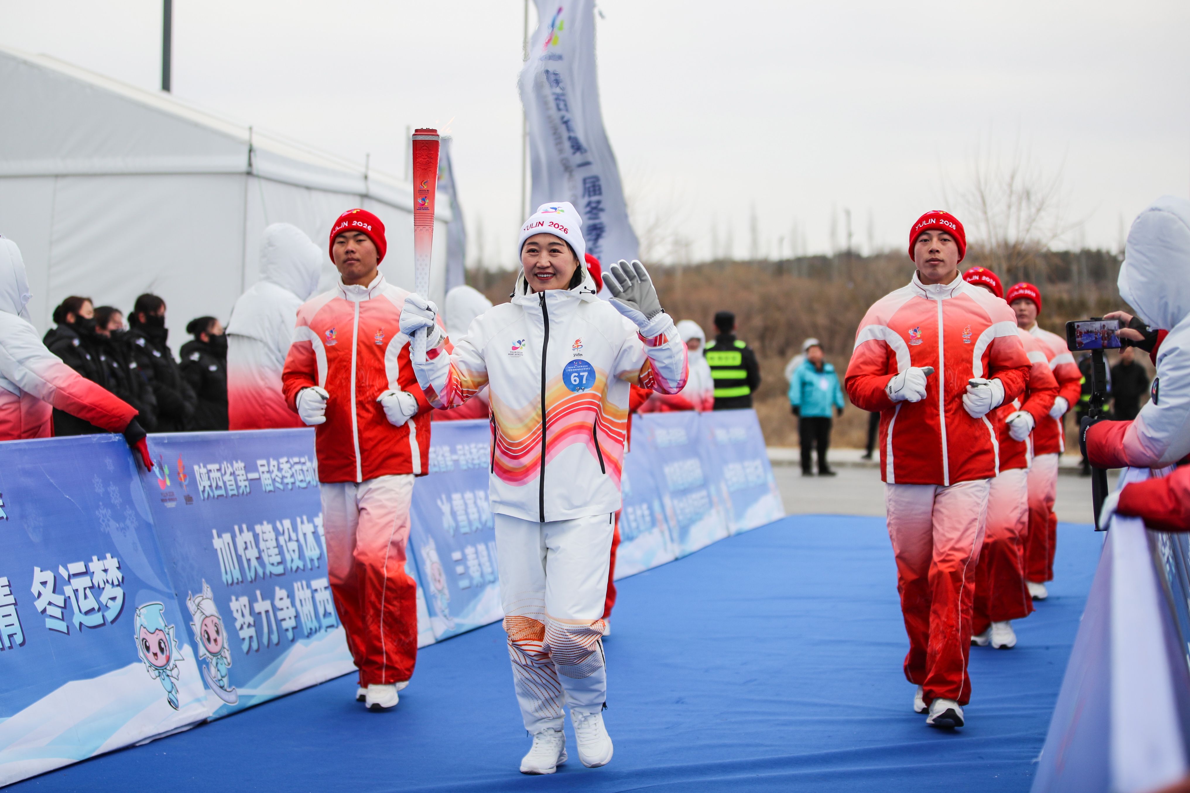 1月18日上午,陕西省第一届冬季运动会火炬传递在榆林科创新城站举行。