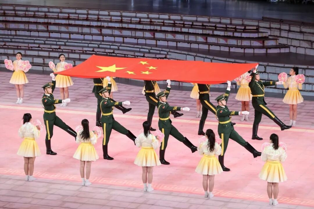 大文体表演环节中,以《驰冰燃雪向新程》为主题、以《古脉新承》《沸冬腾雪》《陕耀未来》为篇章相继精彩呈现,巨幅LED屏幕、光影效果、演员表演完美融合,向外界展示一个风光旖旎、向新向上的榆林,一个追赶超越、谱写新篇的陕西。