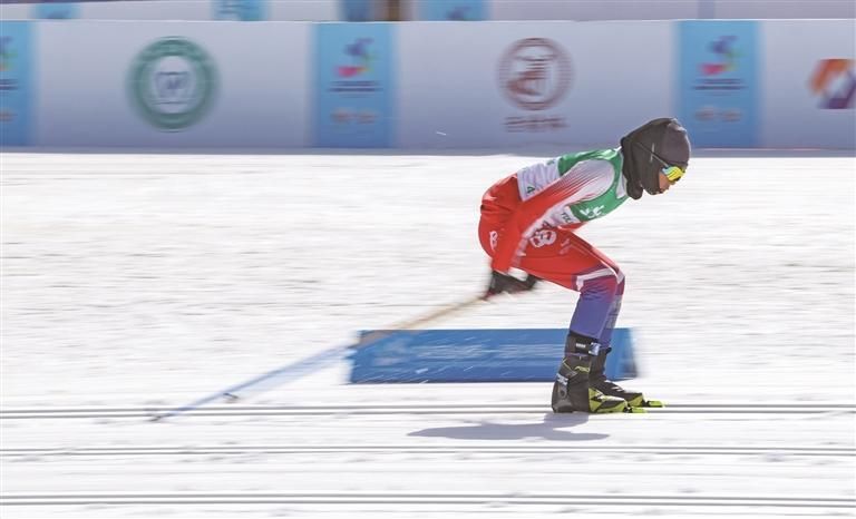 在越野滑雪赛场的起点和终点区域,一簇簇松针整齐地插在赛道旁,迎风摇曳。这些松针质地柔软,不影响选手滑行,还能帮助运动员在白茫茫的雪场上确定赛道位置。“榆林当地的松针比较短、脆,在赛场上可能会断裂,影响选手对赛道位置的判断。我们团队有很多哈尔滨人,他们带了些家乡的松针过来。”本次比赛技术代表崔英波说。
