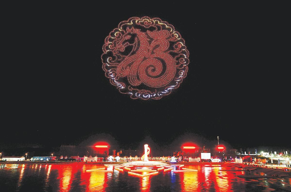 无人机表演送上马年的新春祝福。