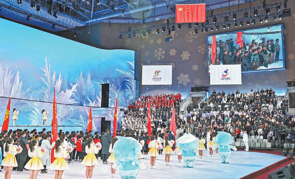 2月11日晚,陕西省第一届冬季运动会在榆林科创新城体育馆圆满闭幕。现场举行庄重的会旗交接仪式,省冬运会会旗正式交至下届举办地宝鸡。闭幕式以“春风一夜到榆林”为主题打造文化美学盛宴,《九曲冰腾》《山水向荣》等节目融科技、自然、人文于一体,腰鼓、唢呐、秧歌等陕北民俗与体育活力交融,演绎出全民共享、万众欢腾的动人图景。当主火炬缓缓熄灭,一段由冰雪点亮的崭新征程就此启航。