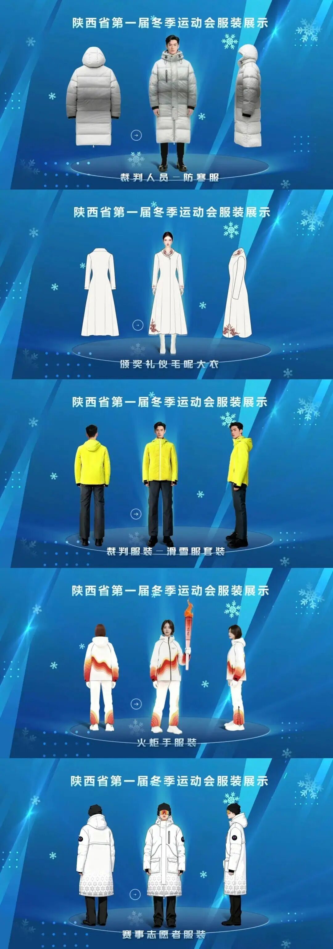 以“山舞银蛇,原驰蜡象,欲与天公试比高”的壮阔意境为灵感,将榆林冰雪北国的自然奇观(黄土高原、黄河、丹霞地貌)与丰富文俗元素融入服饰设计,以羊毛和航天棉为内胆,实现榆林羊绒材质与地域文化的深度结合,让每一件作品都成为行走的文化载体。