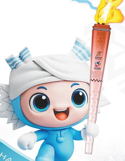 “榆宝宝”头戴白色羊肚手巾,化身为陕北小后生,头部雪花造型如冰晶般绽放,象征着冰雪运动的纯净与力量。他脚踏雪板,昂首向前,传递着速度、挑战与拼搏的冬运精神。