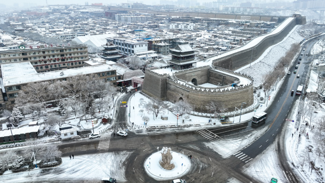 榆林老街白雪轻覆,更显古朴韵味