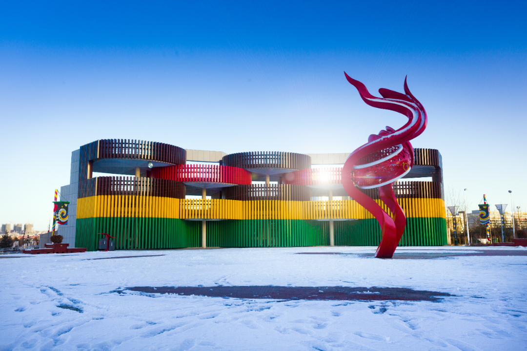 沙河公园城市雕塑在雪中静立