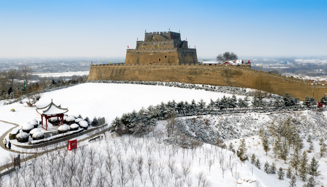 镇北台雄浑身影,在冰雪覆盖下更显历史的厚重与庄严