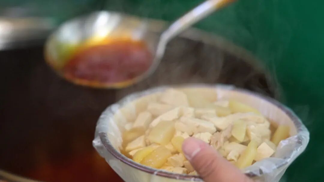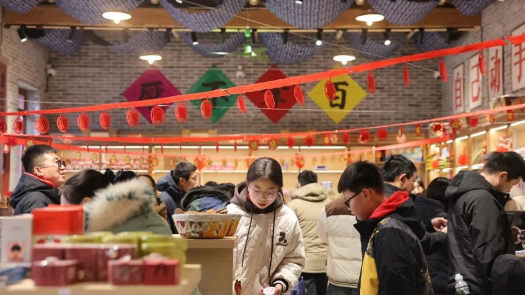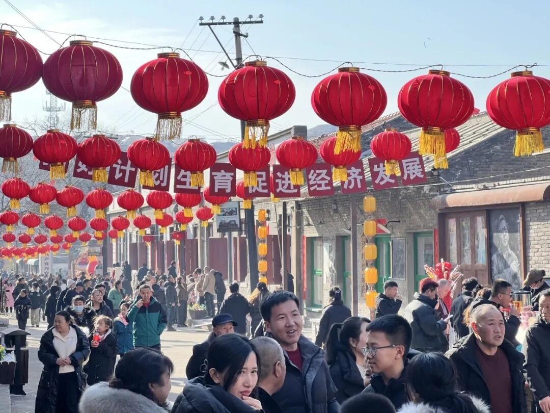 古镇街道早已是“张灯结彩,年味十足”。一串串大红灯笼映照着积雪未消的青石板路,两旁古朴的店铺里,热气腾腾的饸饹、碗托散发着诱人的香味。